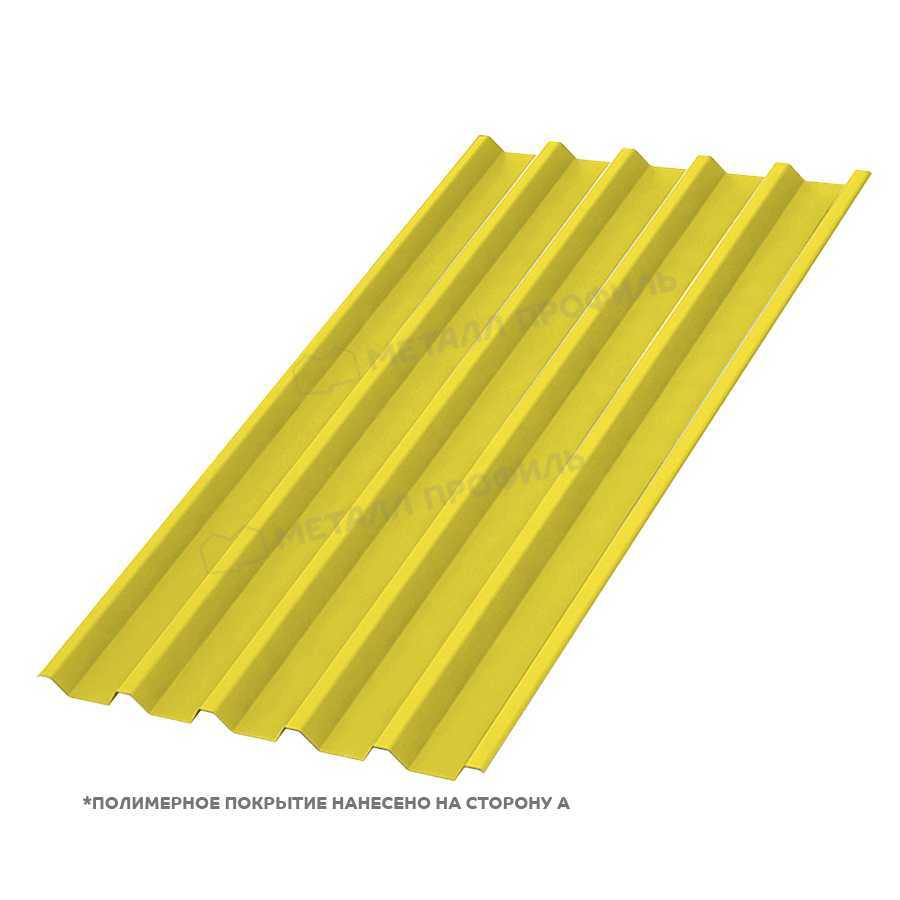 Профлист С-44 толщиной 0,7 мм с полиэстеровым покрытием в цвете RAL 1018 представляет собой надежный материал для строительства и отделки. Он сочетает прочность металла с эстетичным желтым оттенком, имитирующим цинк, и подходит для заборов, кровли и фасадов. Изготовлен компанией Металл Профиль, обеспечивает долговечность и защиту от коррозии.